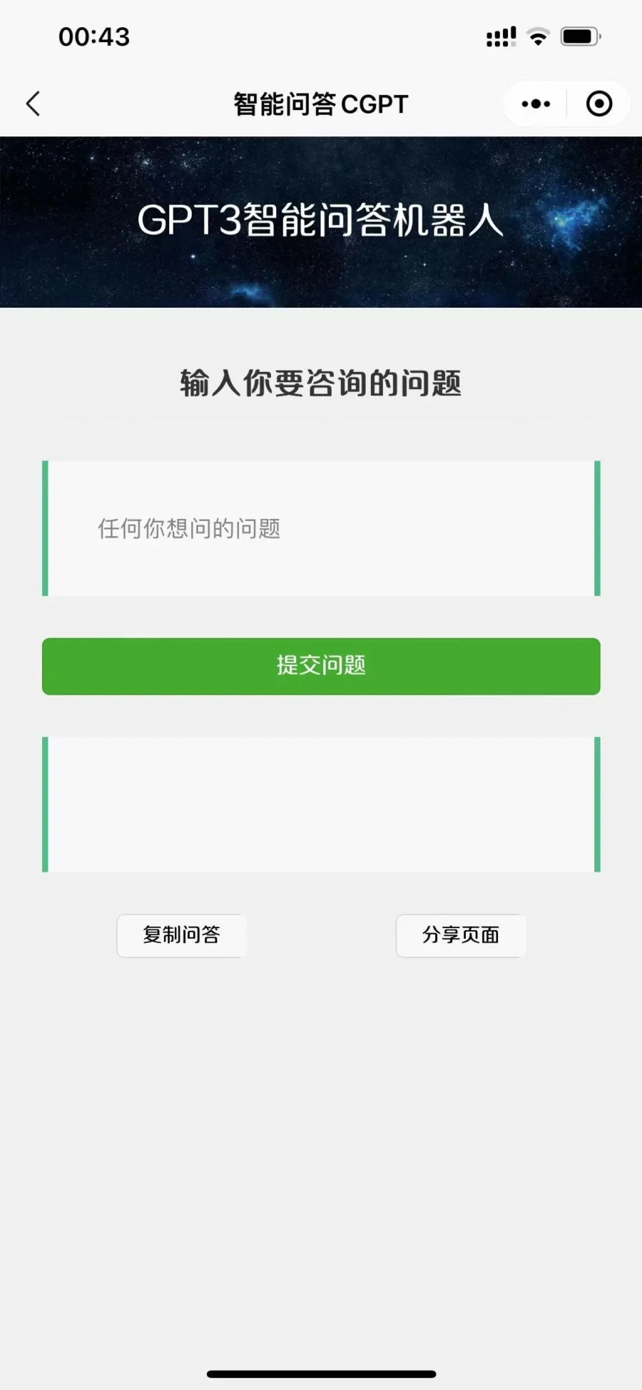 Article ⚠️ 本文最后更新于2023年03月04日,已经过了1052天没有更新,若内容或图片失效,请留言反馈 ChatGPT GPT 3.5 Turbo 机器人 小程序的ChatGPT已升级到GPT 3.5 Turbo。欢迎测试。 现在已有 2048 次阅读,2 条评论,0 人点赞
