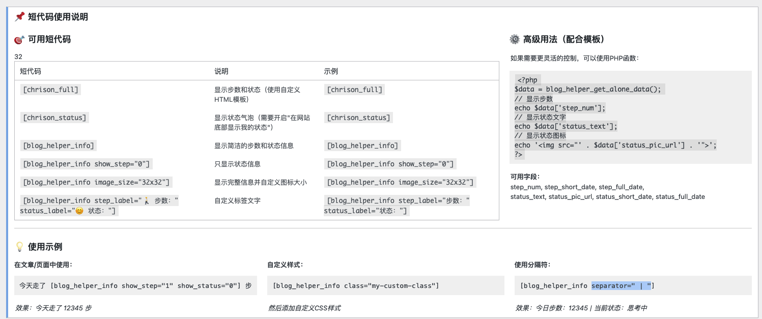 Blog Helper 是WordPress 插件,它是一款可以一键设置心情状态、同步微信运动、快速发布说说|时光机|碎语|日记|心情|微博|文章等功能的插件。